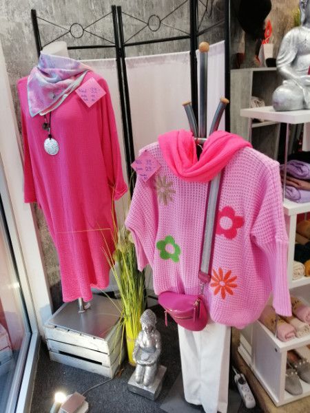 Hochwertige und farbenfrohe italienische Kleidung gehört zu unseren Favoriten, wenn es um Mode in Übergrößen geht. Materialien wie Baumwolle, Viskose und Leinen sind besonders im Frühjahr und Sommer angenehm zu tragen und schmeicheln jeder Frau. In unserem Geschäft in Straelen könnt Ihr jede Woche aktuelle Ware in vielen verschiedenen Farben und Größen entdecken. Ohrringe, Schals und Taschen direkt aus Italien runden dein neues Outfit perfekt ab.